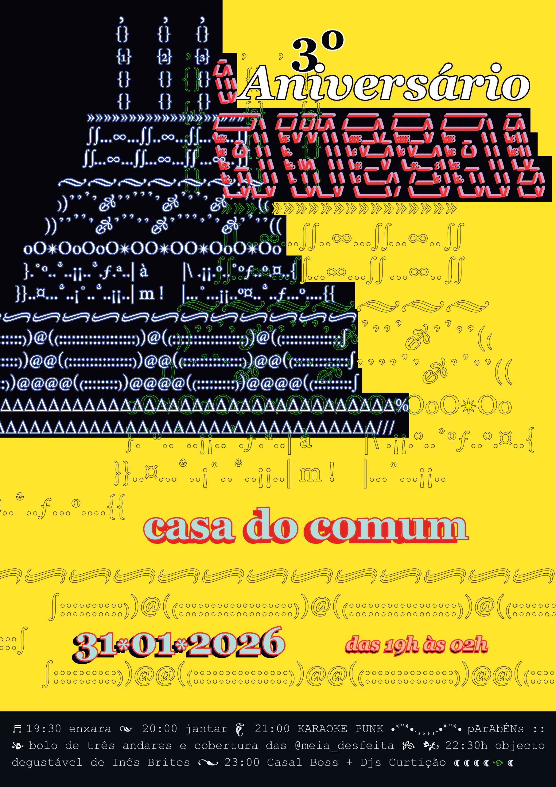 no sábado dia 31 de janeiro, na casa do comum, juntamo-nos para celebrar três voltas ao sol de cantinas sociais itinerantes! \,,/(^_^)\,,/ \,,/(^_^)\,,/ \,,/(^_^)\,,/