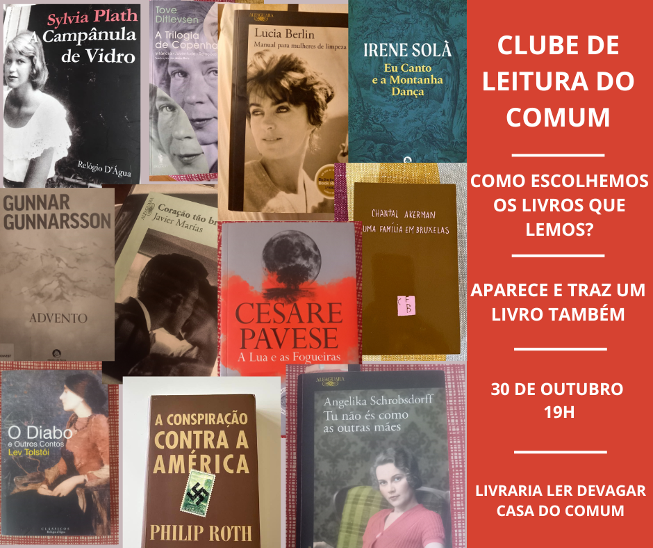 Na próxima sessão do Clube de Leitura do Comum iremos partilhar as nossas experiências. O que nos levou até um determinado livro? Quem nos orientou nessa escolha? Como é que os livros que lemos vêm ter connosco? Por indicação de um bom livreiro (alguém capaz de conduzir um pequeno bote e que terá jeito para a pesca)? Seguindo pistas dispersas? Pela mão de um amigo? Ao acaso?