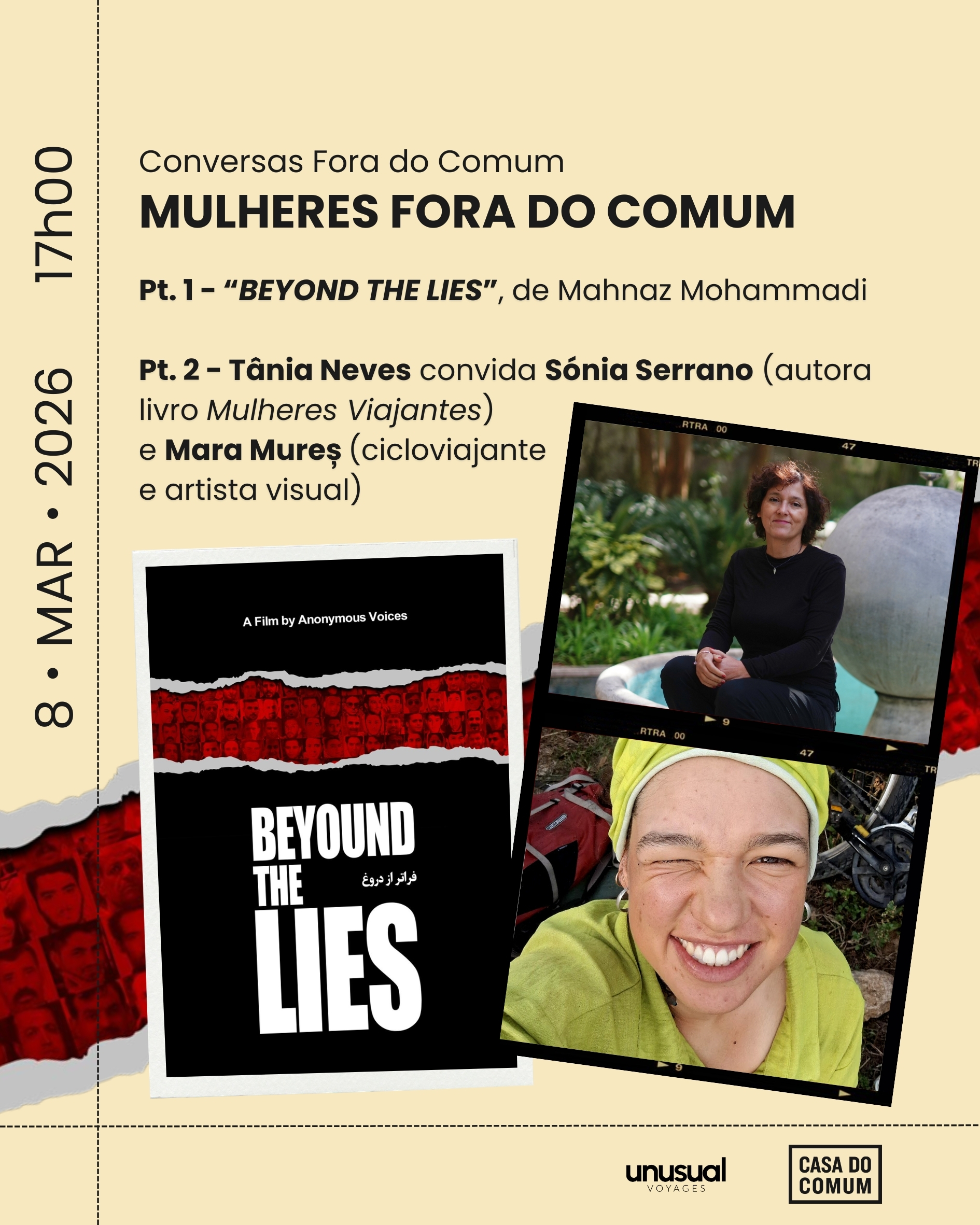 No dia 8 de março, Dia Internacional da Mulher, as Conversas Fora do Comum propõem uma sessĂŁo dedicada a mulheres que romperam fronteiras — geográficas, polĂticas e simbĂłlicas.